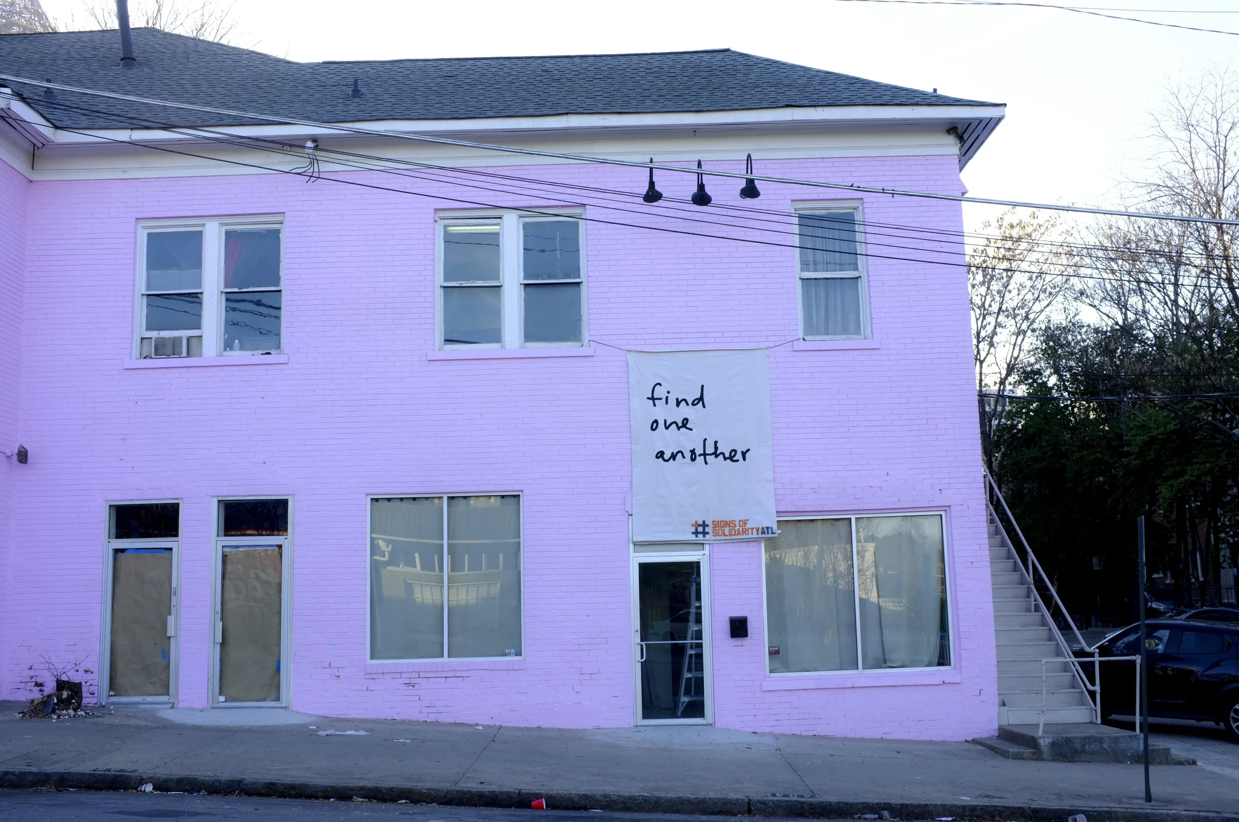 An inauguration day public art protest in opposition to hate. Dashboard, along with many other art groups in ATL and Philly, hung artist-made signs from buildings throughout Atlanta. See more here.